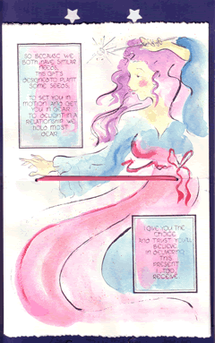 as a locking device. Hand lettered rhyming verse offers an invitation